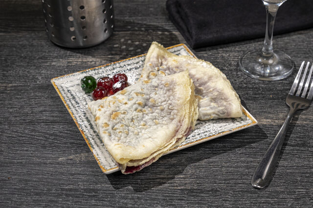Clatite cu dulceata de visine, capsuni, fructe de padure, caise sau afine 12 Lei portia (2 buc)