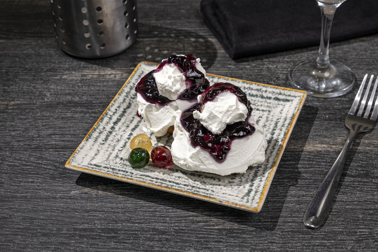 Papanasi cu dulceata de afine, fructe de padure sau finetti 18 Lei portia (2 buc)